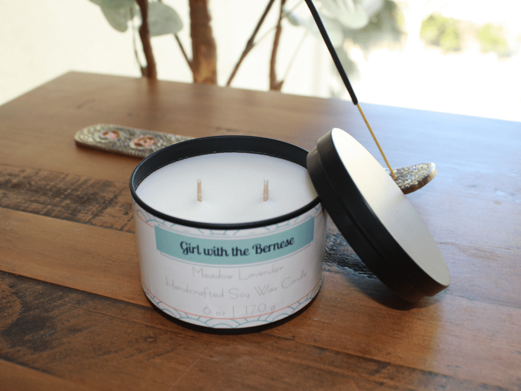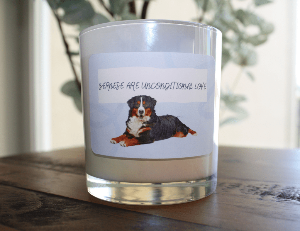 When Willow and I made a pact to do life together, I knew I had to include her in my business venture. She is the muse and mascot behind Girl with the Bernese. We opened an Etsy shop which combines my love for candle-making and dogs. Our shop offers a range of handmade, 100% soy, eco-friendly candles – available in a variety of scents, sizes, and styles. In the spirit of honoring the animals who share our lives, there are also pet-themed paw print melts as well as a pet memorial/gift option of personalizing a glass jar candle with your favorite pet photo.